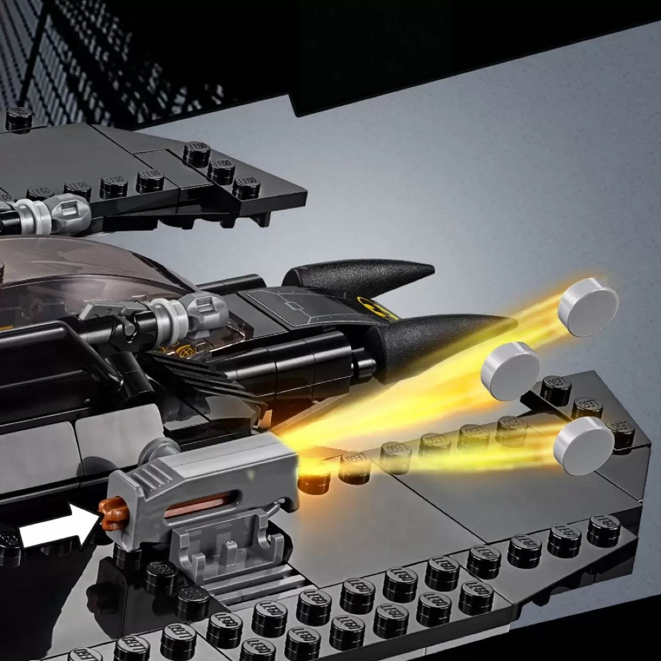 • Batman's Batwing features an opening minifigure cockpit, 2 new-for-June-2019 rapid-fire multi shooters with tile ammo and 2 shooters which can fire tiles or studs.