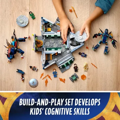 LEGO® Marvel Rise of the Domo (76156) lets kids explore the detailed interior of the Eternals’ spaceship then recreate the final battle with 6 superhero minifigures and 2 evil Deviants.