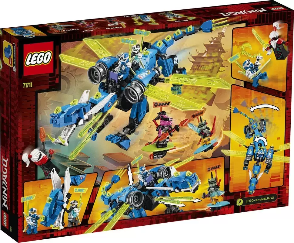 This LEGO? NINJAGO? Jay's Cyber Dragon (71711) buildable toy with 5 minifigures will be adored by fans of ninja mechs, who can use it to create their own action-packed fantasy stories from Prime Empire. This stunning LEGO dragon is highly posable and fires missiles from its spring-loaded shooters. The best dragon toys With 5 buildable figures of NINJAGO? Digi Jay, Digi Nya, Unagami, Richie and Hausner, ninja fans can dive in the video game world of Prime Empire and play out battles for the yellow Key-Tana. The two ninjas can ride in the cockpit of the awesome Dragon Mech, which will grip youngsters' imaginations as they play solo or with friends. The perfect construction toys LEGO? NINJAGO? building toys for kids allow them to enter a world of adventure where they can team up with their ninja heroes to take on the forces of evil. NINJAGO fans will be enthralled as they role-play with these stunning ninja action toys, which include ninja cars, dragon models, temples, buildable figures and more.